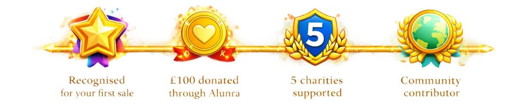 Alunra recognises meaningful participation through Alunra Coins, badges, and visible milestones. The goal is not competition, but encouragement. Generosity becomes something you can see and feel over time.